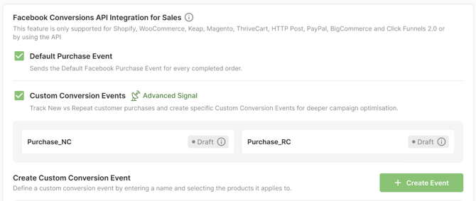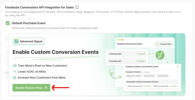 Note: Conversions API for Sales is currently only available for Wicked Accounts using Shopify, WooCommerce, ThriveCart, Magento 2, Keap, PayPal, ClickFunnels 2.0, or our API.