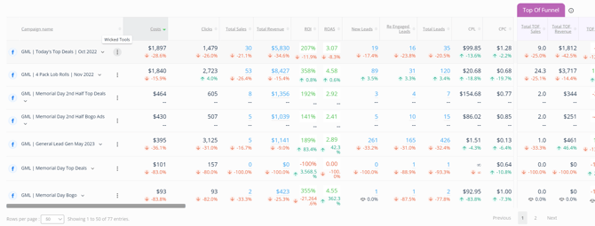 Every row in the FunnelVision Grid has 3 dots which are the Wicked Tools options