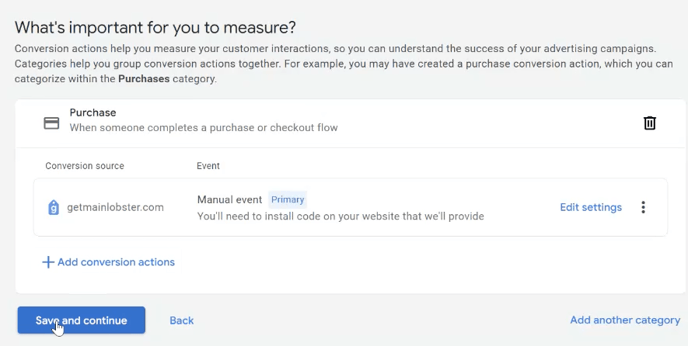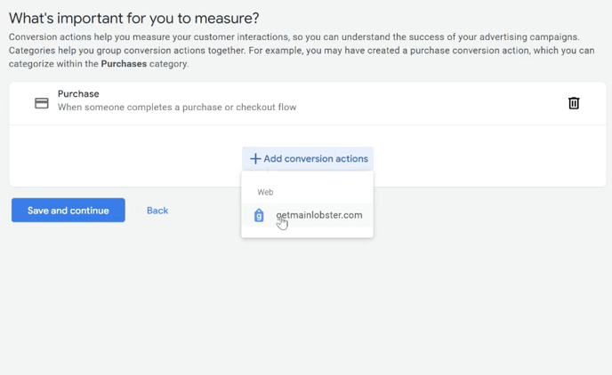 If you don’t have a suitable Conversion Action as listed in the step above, follow these steps to create one: