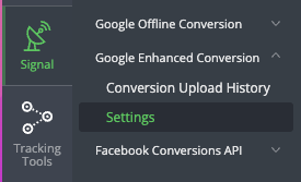 In Wicked Reports, navigate to Signal → Google Enhanced Conversions → Settings.