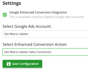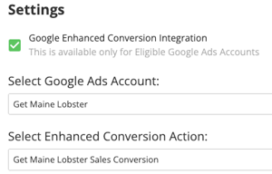 From the list of available Conversion Actions, select the Purchase Conversion Action you want order data sent to. Note: This Conversion Action must already be configured as Enhanced in your Google Ads account.