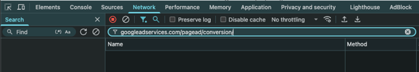- If no request is found → refresh the page with the Network tab still open and search again. If it still does not appear, re-check your Shopify pixel setup (most issues are caused by a missing or incorrect